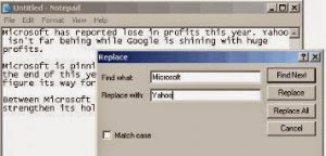 6. Notepad as Text Replacer – Notepad can be used by you to replace a word in a text. For example, you want to replace the word ‘Microsoft’ with the word ‘Yahoo’, you can copy your writing in notepad then to replace you press Ctrl + H.